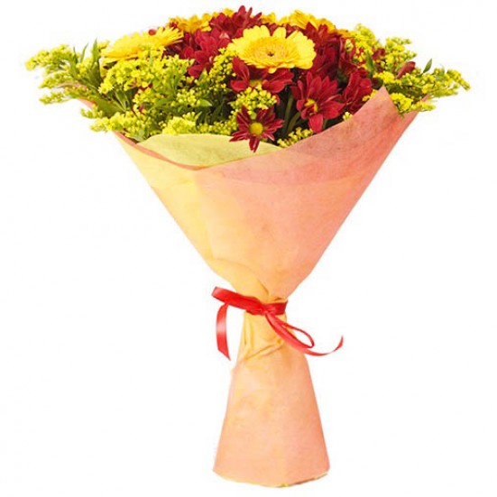 Букет «5 гербер, 5 хризантем, 5 солидаго» в Дмитрове
